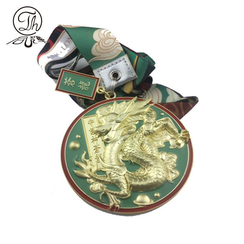 Chinese Supplier Chinese Souryu Metal Medals Gold Dragon Medal with Ribbon Lanyard Souvenir Guardian Angel Medallion