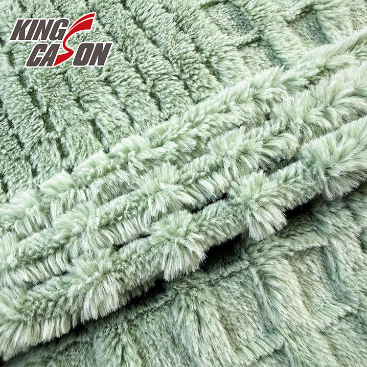 Chinese Suppliers 280gsm 1.6m Solid Green Small Plaid Brushed Flower Pattern Rabbit Hair PV Plush Plush for Clothes and Toys