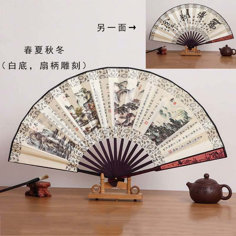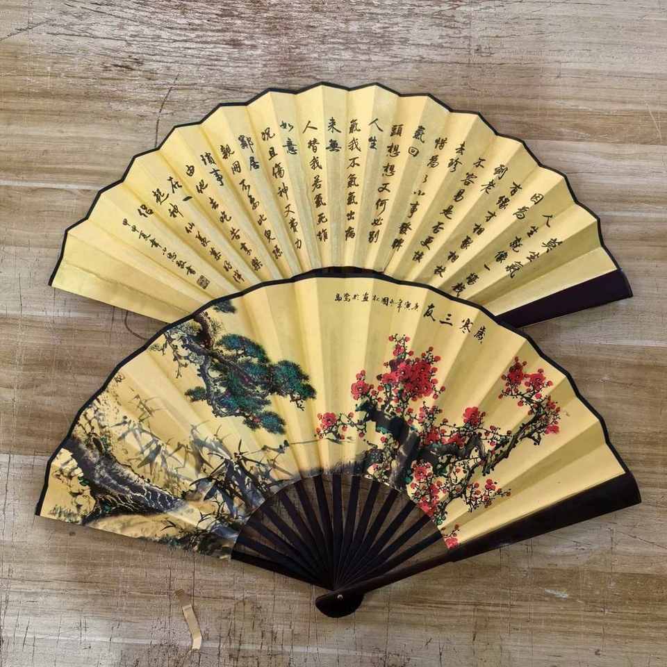 Chinese Vintage Style Folding Fan Wooden Handle Classical Party Dance Hand Fan Men's and Women's Summer Cool Hand Fan