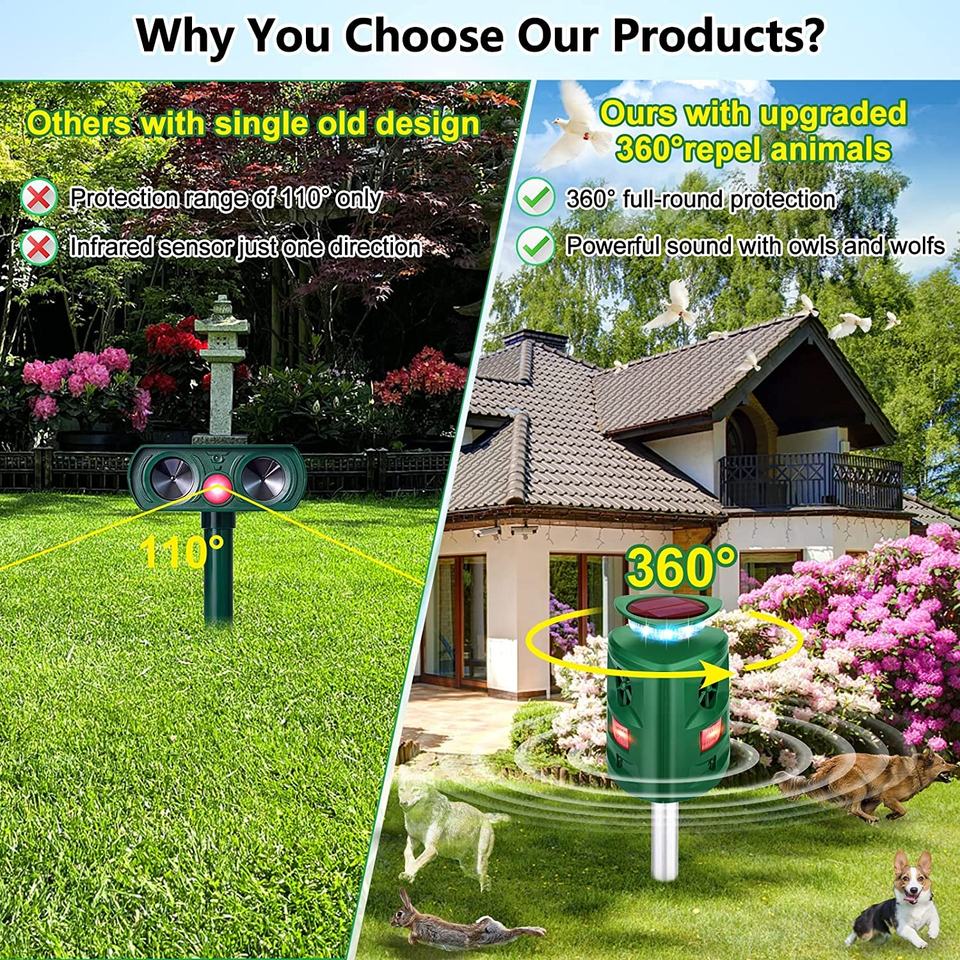 Chingyoo Offre Spéciale extérieur à énergie solaire répulsif pour animaux à ultrasons souris oiseau singe chien répulsif chat répulsif