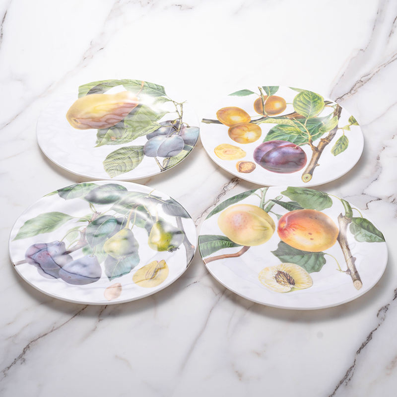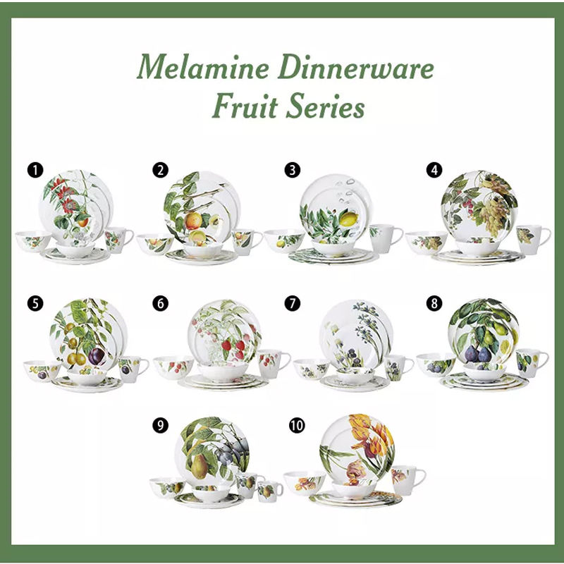 Service de table en mélamine multicolores à motifs de fruits, résistant aux éclats, sans BPA, 16 pièces, vaisselle durable, ensemble de plats et de bols