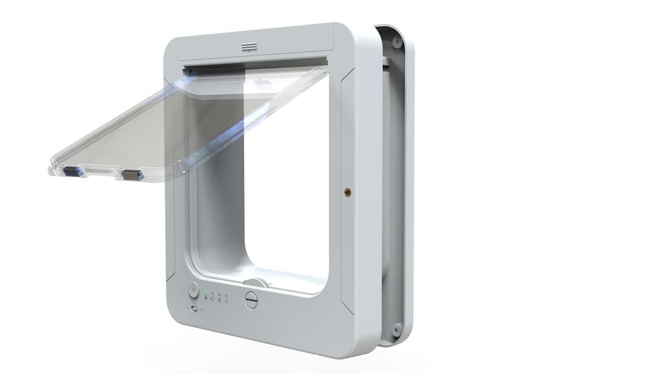 Porte pour animaux de compagnie en plastique écologique de luxe avec capteur à puce, verrouillage 4 directions, ouverture spirale, volet intérieur, pour chiens et chats, accès au salon