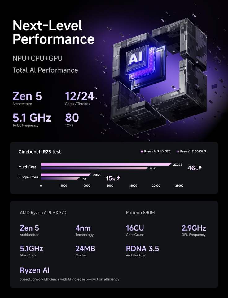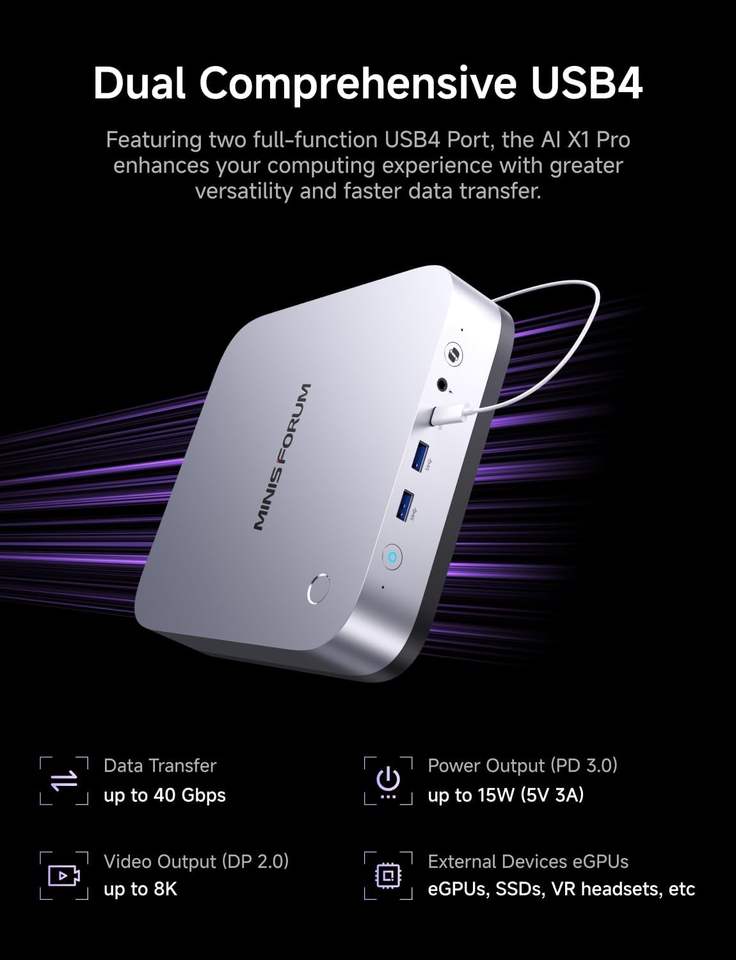 Aggloméré Minisforum AI X1 Pro-370 Mini PC AMD Ai 9 Hx 370(12c/24t) 32 Go DDR5 1 To SSD Ordinateur de bureau 2xUSB4 Sortie AMD Radeon
