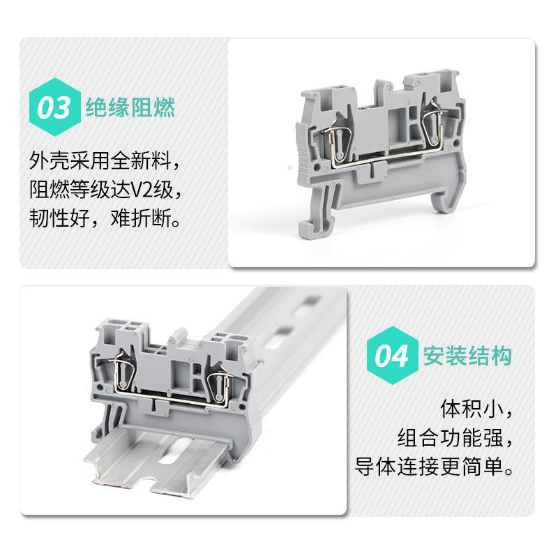 Bloc de bornes à ressort Chkl St2.5 en cuivre pour rail DIN, connexion rapide, insertion droite