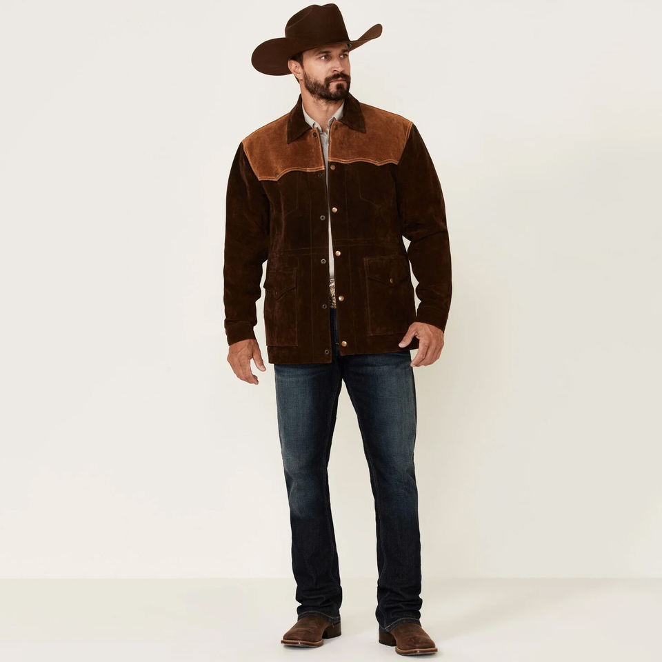 Chocolat deux tons daim Rancher voiture veste 2025 mode hommes en cuir véritable vestes automne daim couleur unie hommes veste