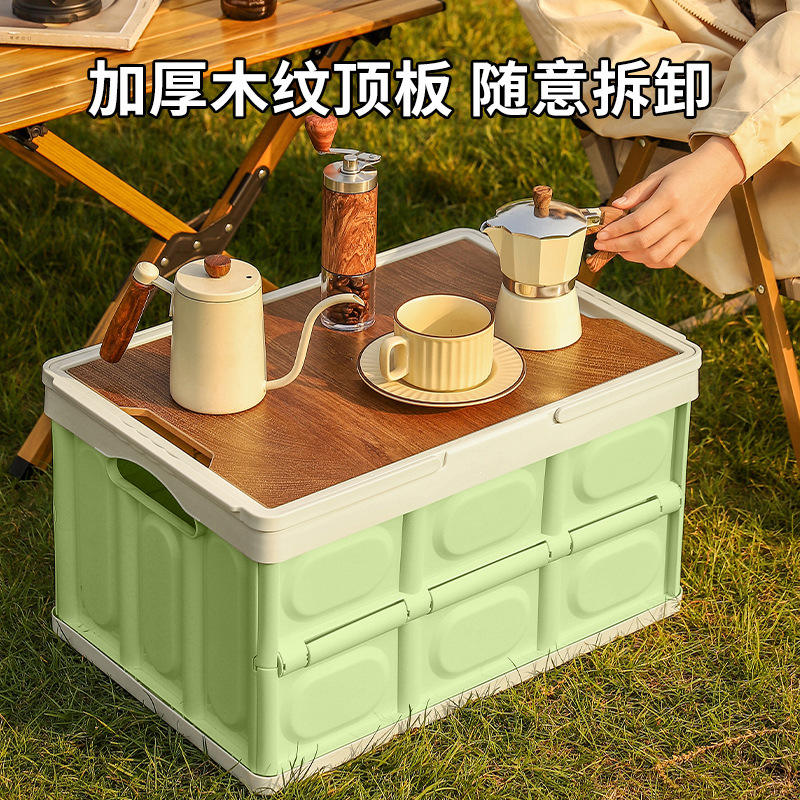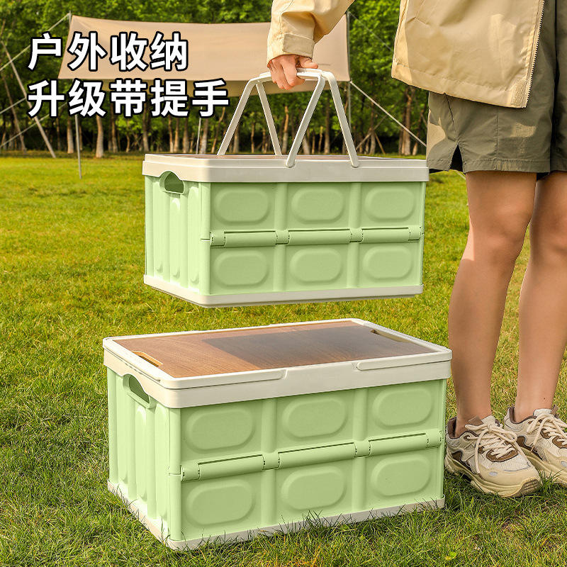 Boîte de rangement pliable Chongteng avec poignée et couvercle en bois, rectangulaire, portable, pour le camping en extérieur, résistante à la pression, en matériau PP