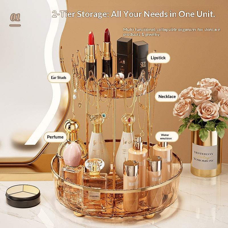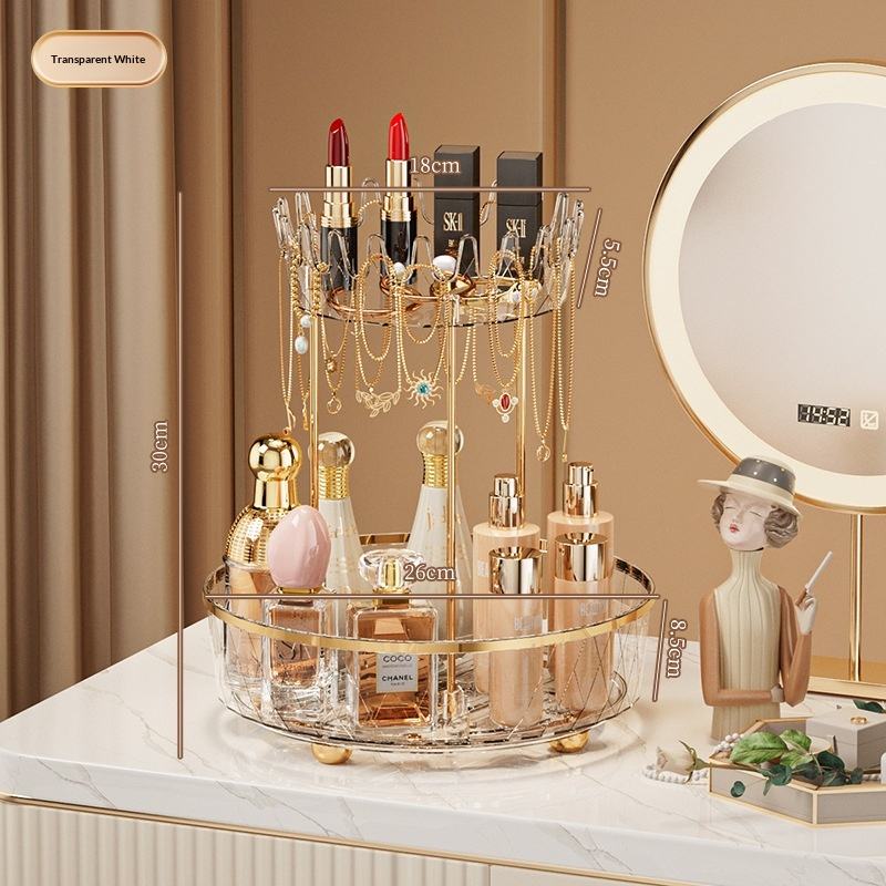 Choisissez le rangement de bureau en plastique double couche amusant et moderne avec une boîte de rangement rotative transparente pour cosmétiques et aliments.