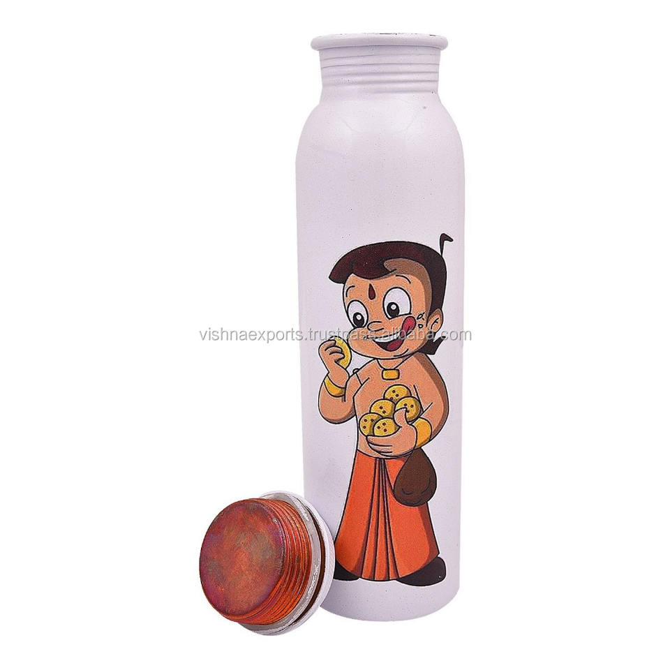 Bouteille d'eau en cuivre imprimée avec le personnage de dessin animé indien célèbre Chota Bheem