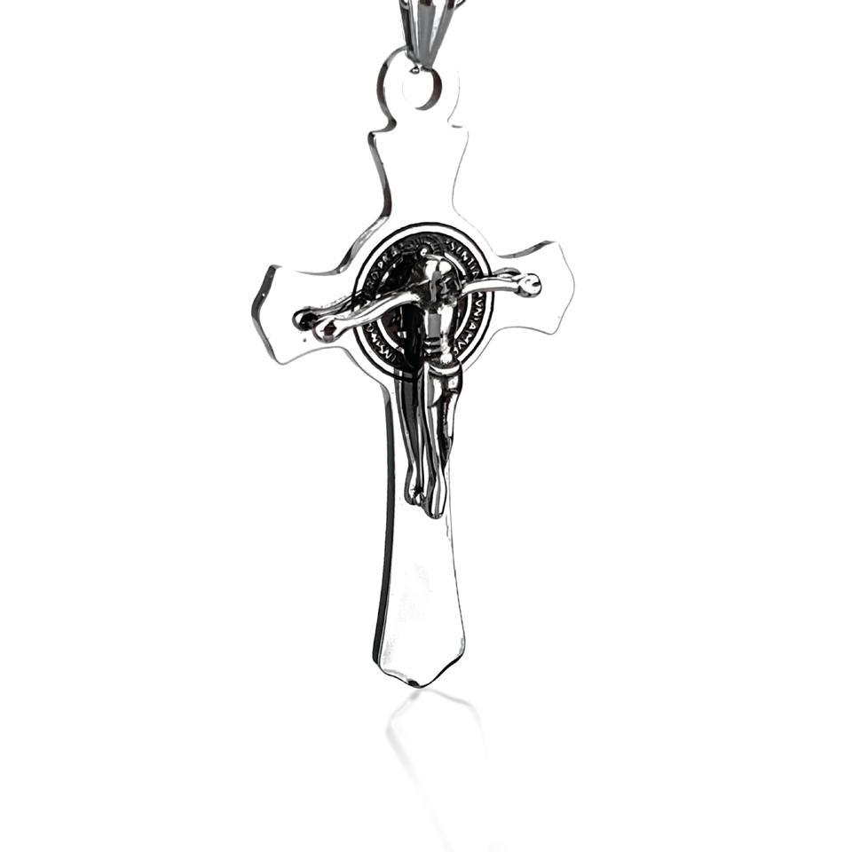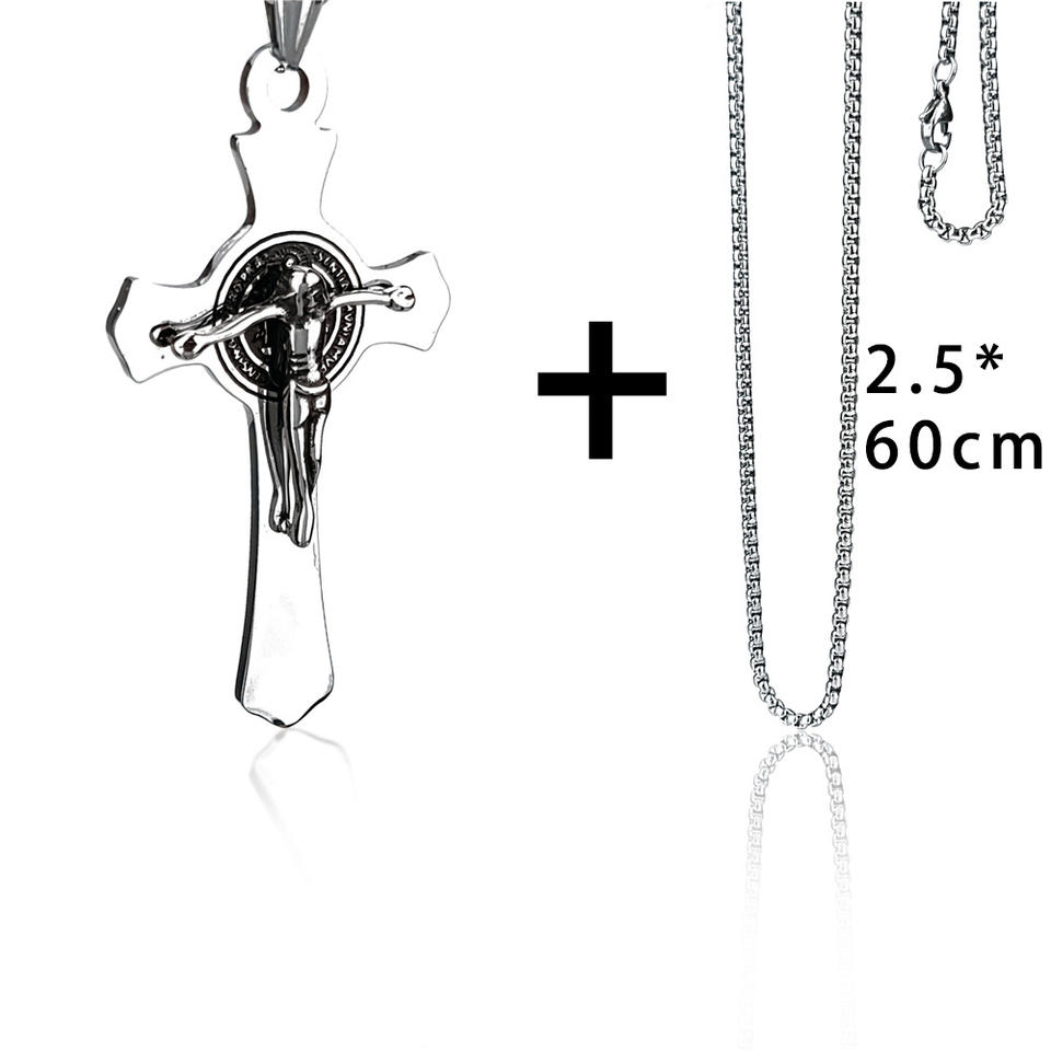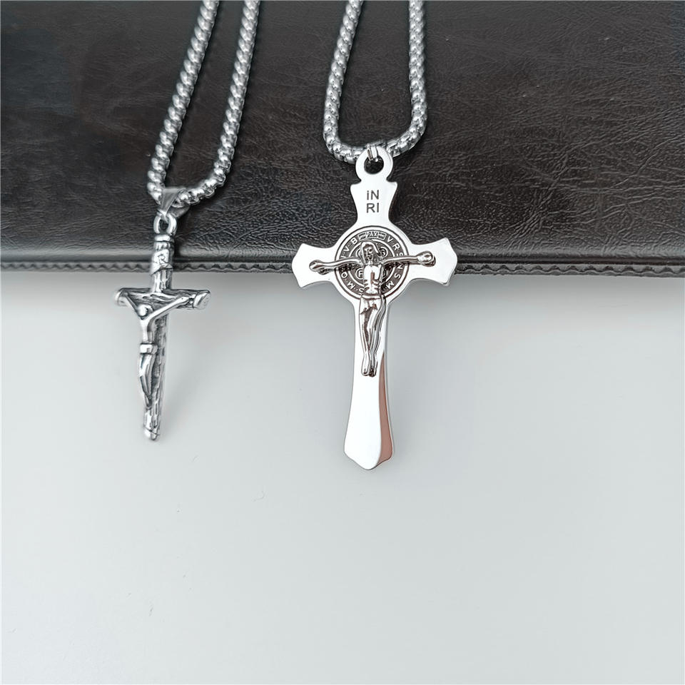Pendentif Croix en Acier Titane Jésus-Christ, Lettrage Huilé Biblique, Collier Gothique en Acier Inoxydable pour Homme, Vente en Gros
