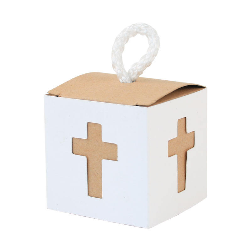 Boîte Cadeau de Baptême pour Filles et Garçons, Faveur de Fête Religieuse en Papier, Sachets Bonbons, Boîte en Papier Kraft avec Motif Croix et Ange