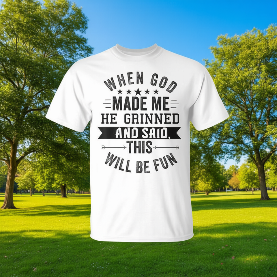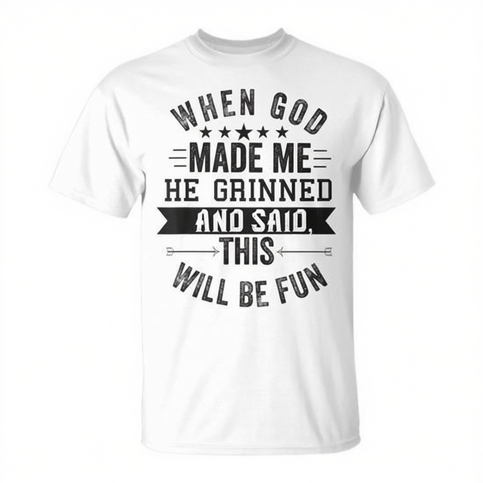 T-shirt religieux chrétien « Quand Dieu m'a créé, il a souri et a dit que c'était allé se bien passer », chemise blanche pour hommes