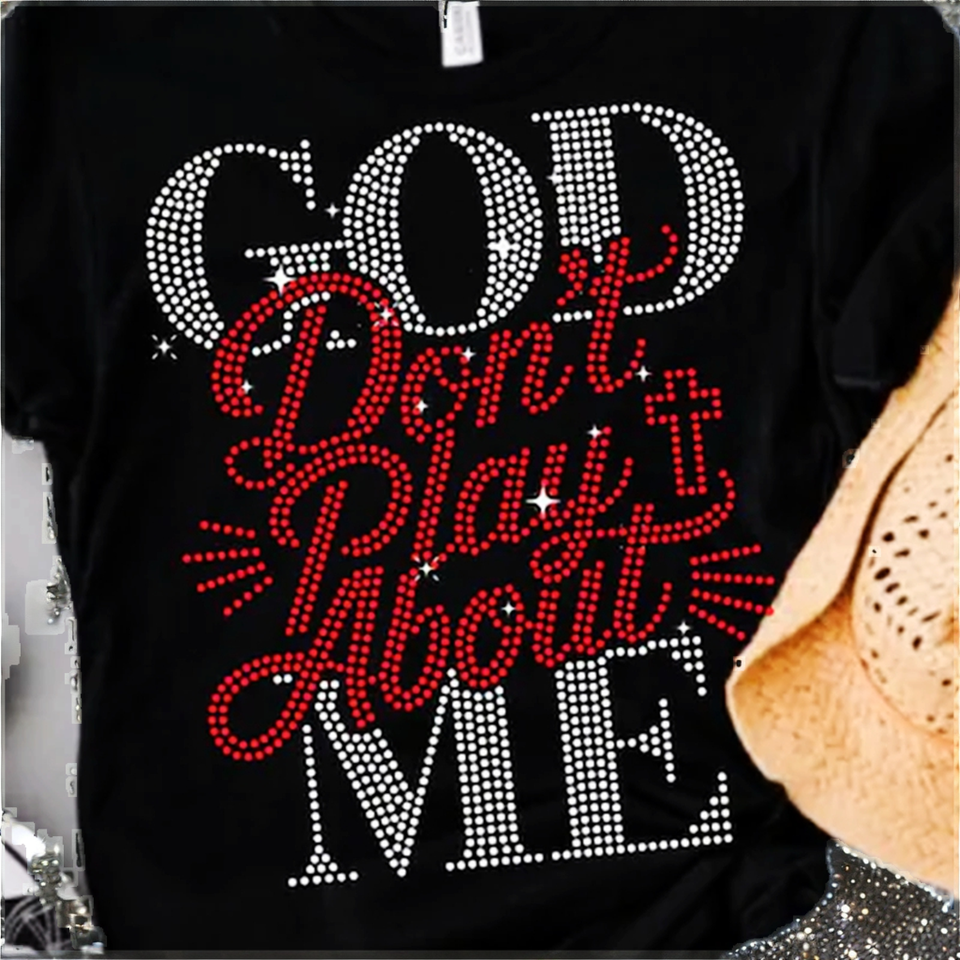 Transfert de strass thermocollants ronds à dos plat, motif éco-responsable, avec message chrétien 'God Don't Play Me Bling', pour vêtements et chaussures