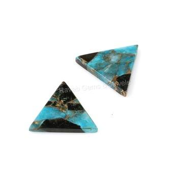Triangle plat en turquoise bleu noir cuivré pour la création de bijoux.