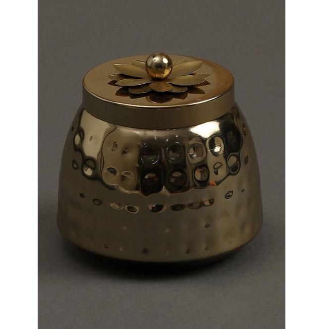 Pot de bougie en métal de décor de table de noël et de mariage avec couvercle pot de bougie de forme ronde fini martelé en cuivre