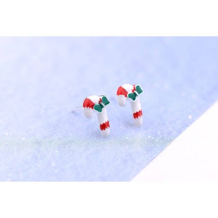 Christmas Candy Cane Sterling Silver Stud Earrings C10 Jewelry Box Included