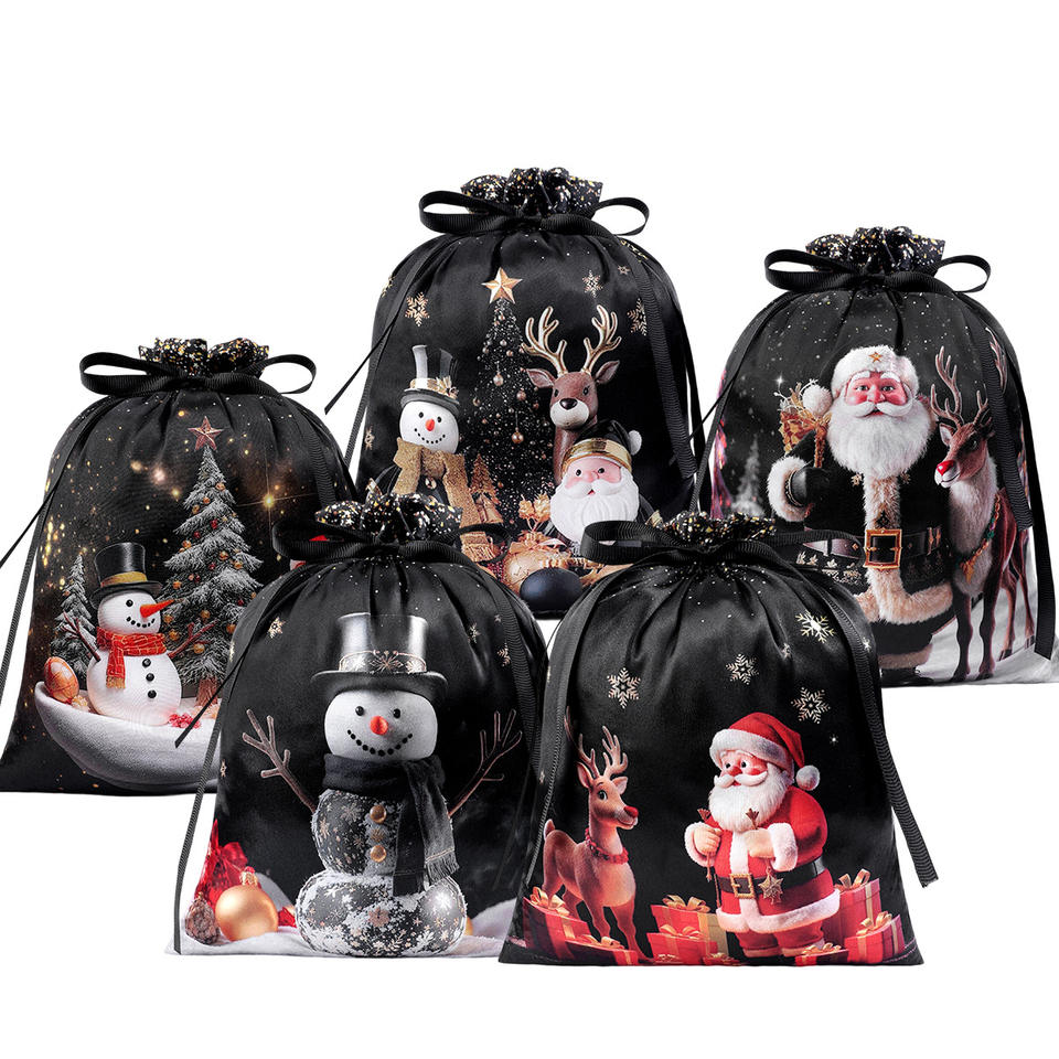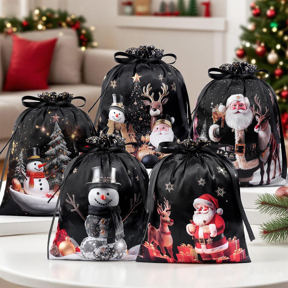 Sac cadeau promotionnel en satin recyclable personnalisé pour Noël avec double cordon de serrage pour le rangement
