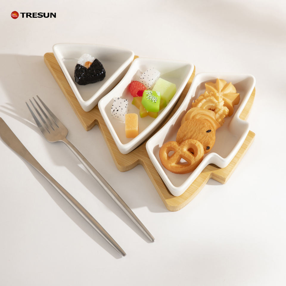 Plat de service en céramique de Noël plateau apéritif amovible plateau à Dessert assiette en porcelaine avec plateau en bambou pour la fête de mariage