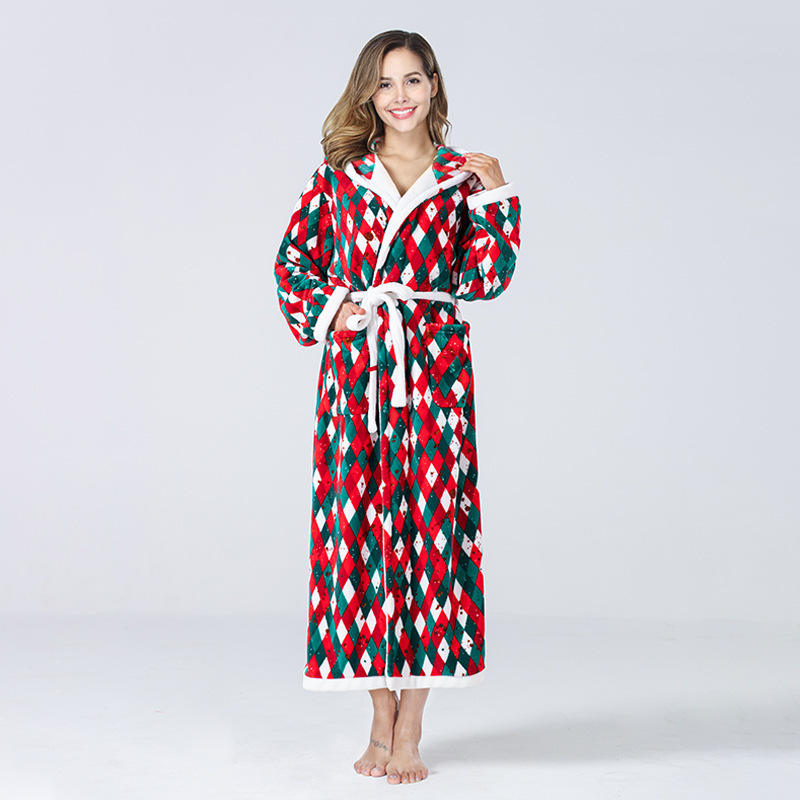 Noël à carreaux peignoir chapeau à capuche couleur correspondant Pj flanelle noël luxe Onesie pyjamas chemise de nuit pour les femmes