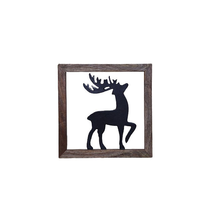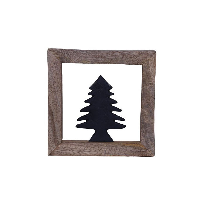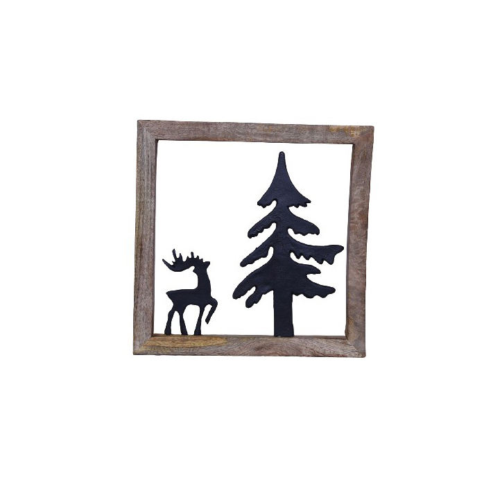 Collection de Noël Père Noël en aluminium avec chariot dans un cadre en bois avec finition noire personnalisée Décor de table de Noël fait main