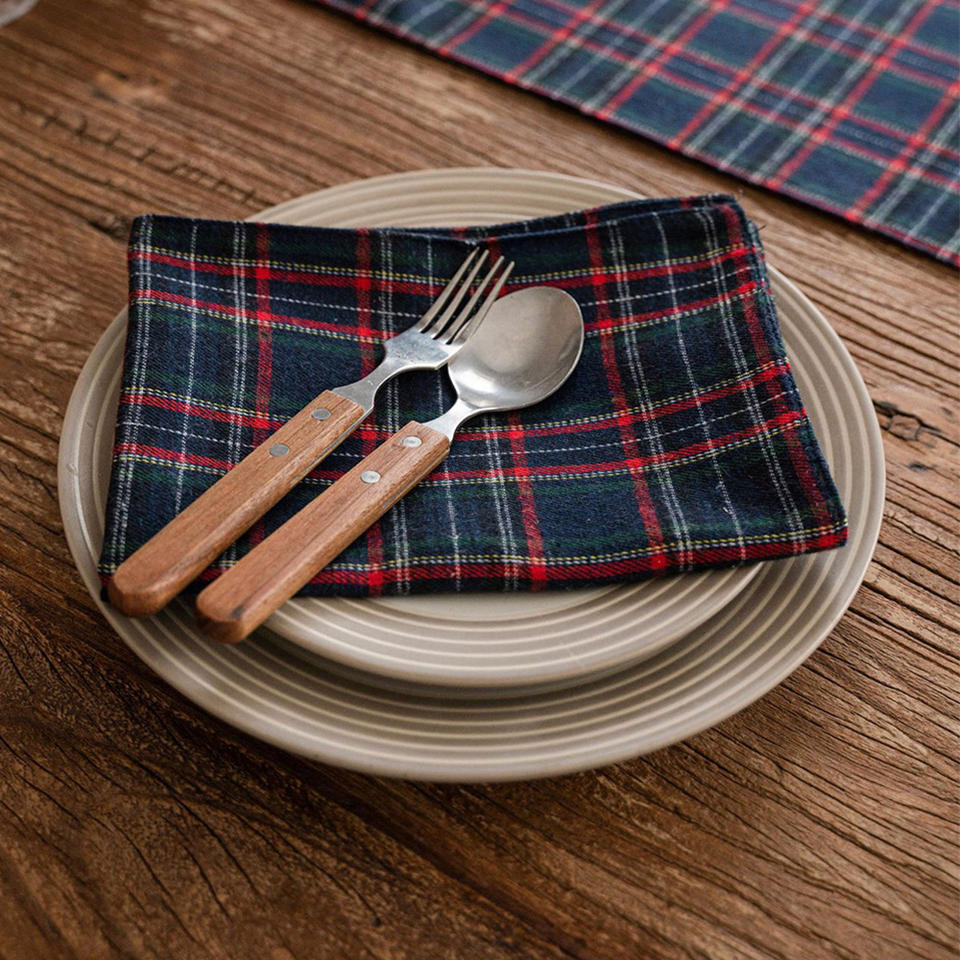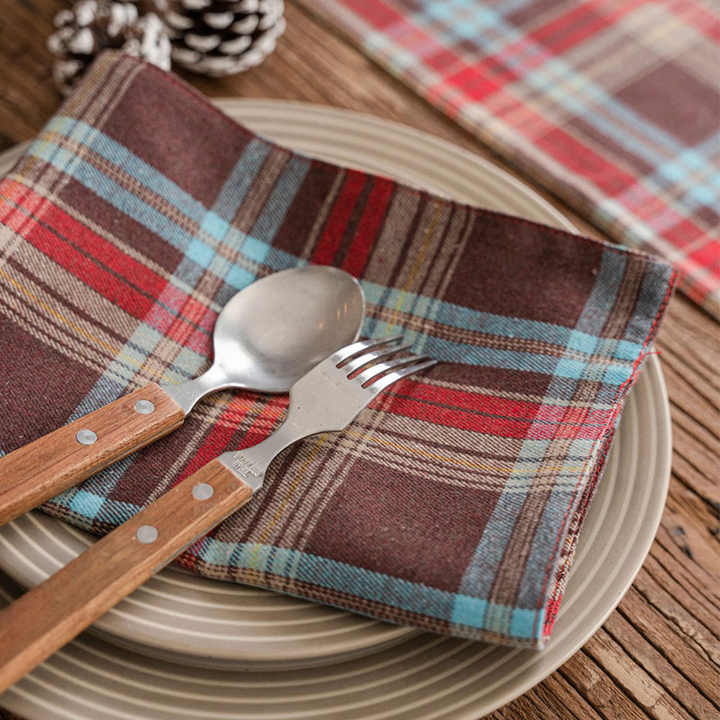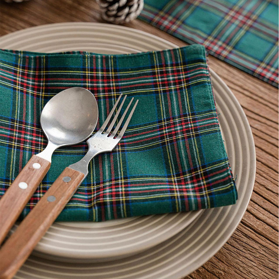 Serviettes de thé à carreaux en coton personnalisé de Noël Serviette en lin de coton vert lavable