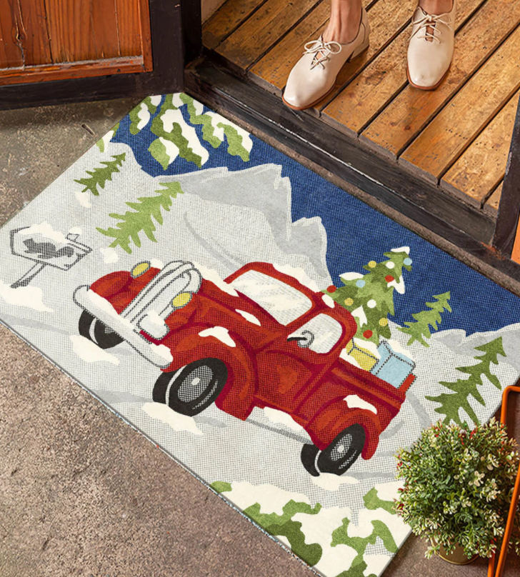 Tapis de porte en polyester imprimé personnalisé pour Noël avec revêtement en PVC, lavable, antidérapant pour la prière, le pique-nique et l'exercice