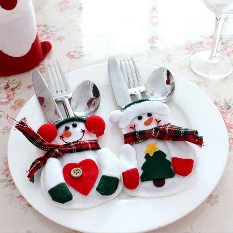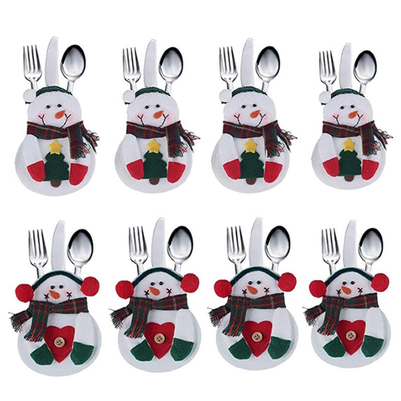 Christmas Cutlery Bag Cute Snowman Silverware Tableware Holder Knife Fork Bag Pouch Decor for Home Dinner Table