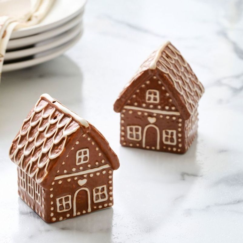 Décor de Noël maison pain d'épice grès salière et poivrière