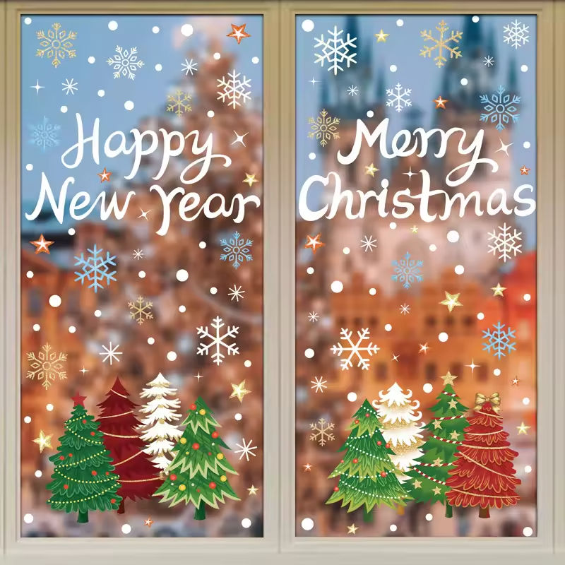 Autocollants statiques pour fenêtres de décoration de Noël, branches d'arbre de Noël, cône de pin, boule de Noël, autocollants pour fenêtres, autocollants suspendus