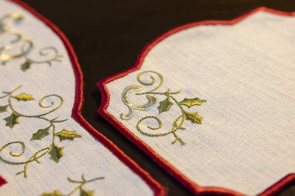Noël brodé Table Textile ensemble 7 pièces coureur Cocktail serviette dîner serviette serviette 100% Polyester lin résistant aux taches