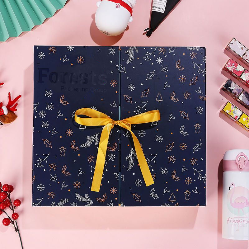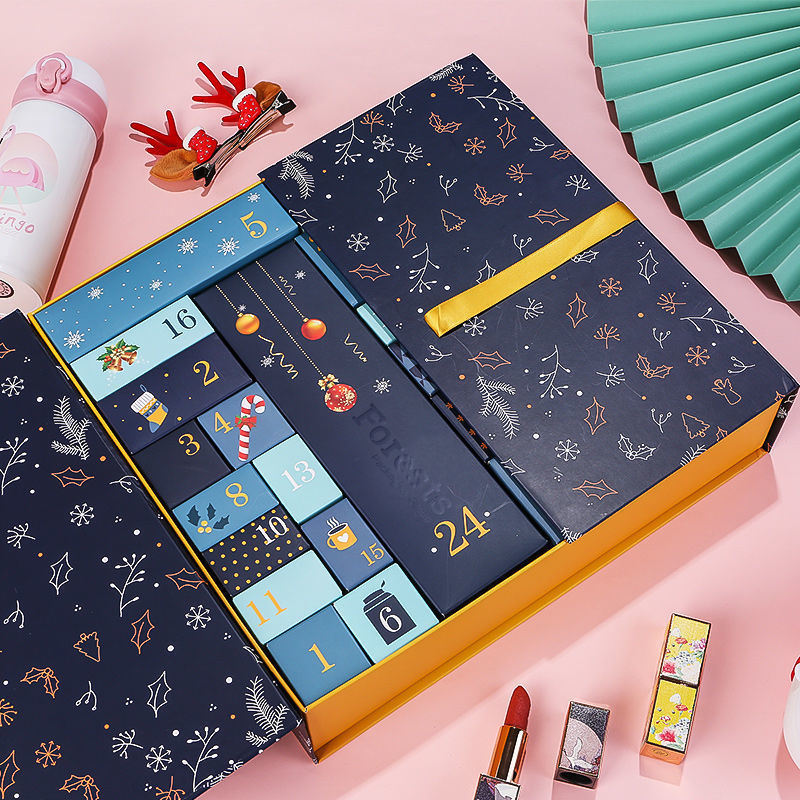 Veille de Noël Nouvel An Boîte-cadeau personnalisée Boîte de calendrier de l'avent en carton avec 30 24 tiroirs Double ouverture et ruban de soie