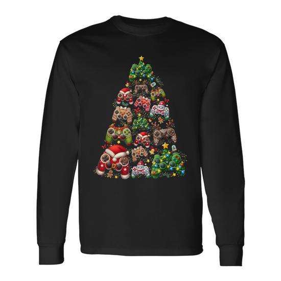 T-shirt à manches longues pour contrôleur de jeu de Noël, Santa Video Game
