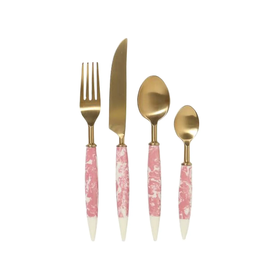 Cadeau de Noël 5 pièces ensemble de couverts en laiton poignée en résine café Dessert cuillère et fourchette ensemble de couverts avec emballage de boîte-cadeau