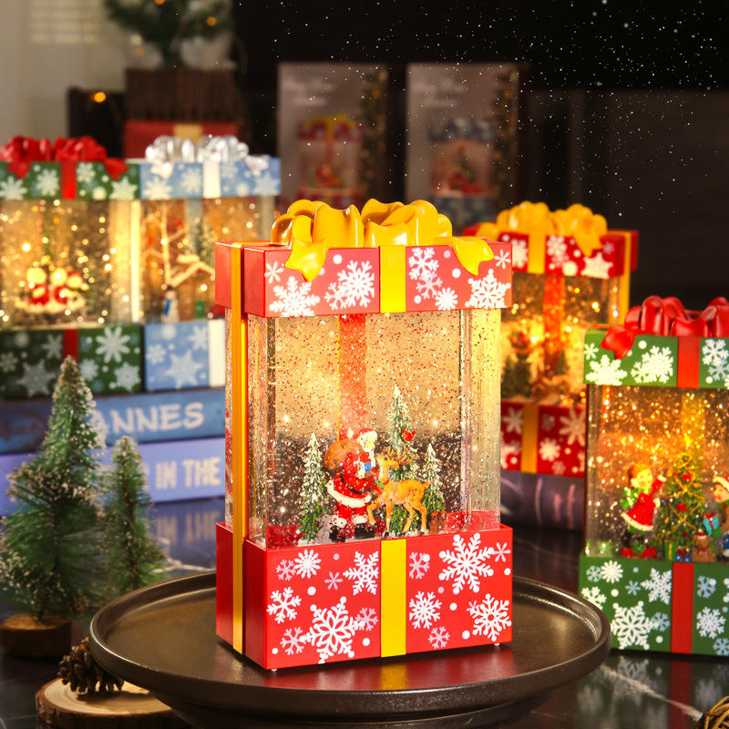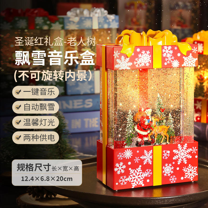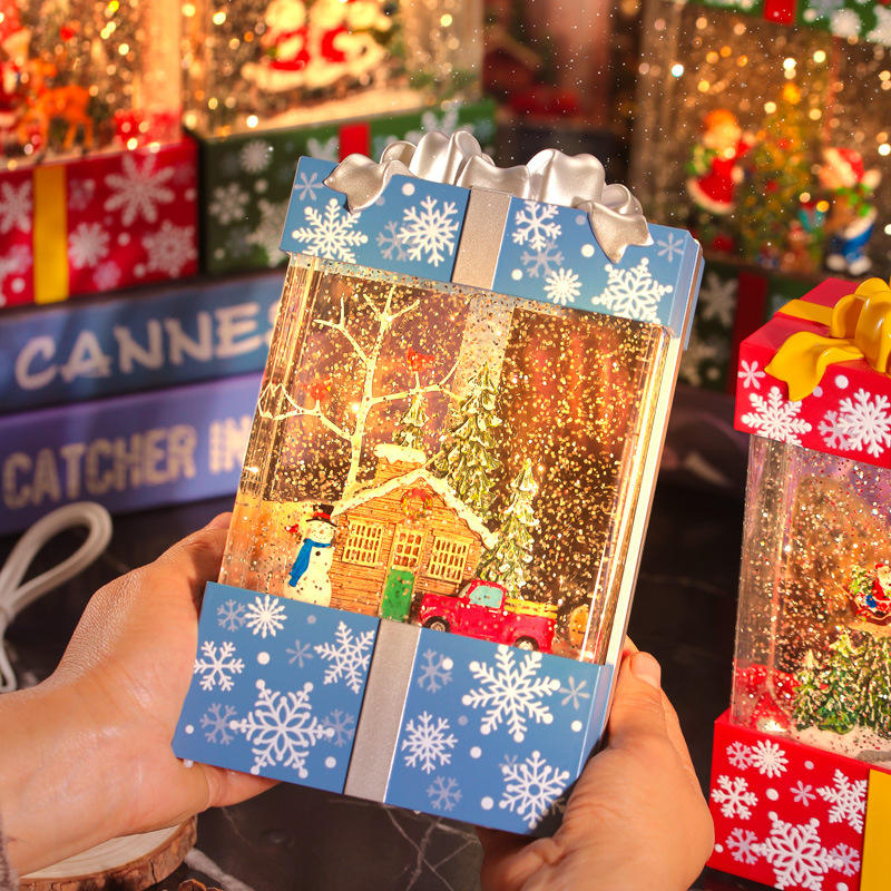 Sac cadeau de Noël boîte à musique lumière neige fenêtre habiller maison enfants boule de cristal