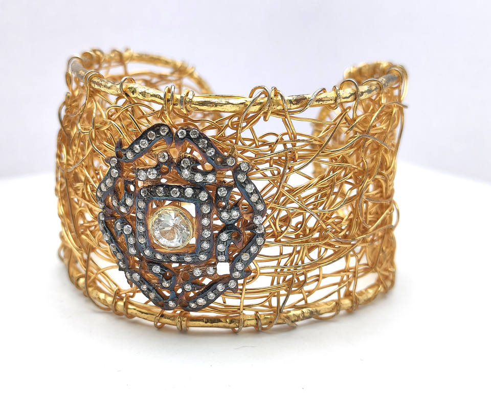 Christmas Gift Gold Plated Cz Set Handmade Open Cuff Bracelets for Women Girls 14K Gold Plated Jewelry Wide Brass Cuff Bracelet
