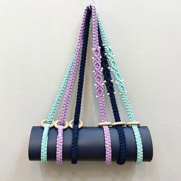 Cadeaux de noël fait à la main coloré macramé transporter sangle sac à bandoulière porte-tapis tapis de Yoga corde avec perles