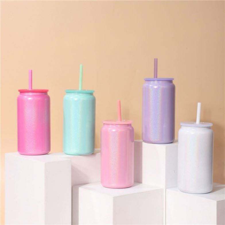 Christmas Halloween 16Oz Autumn Colored Beer Plastic Can With Lid and Straw for UV DTF Wraps