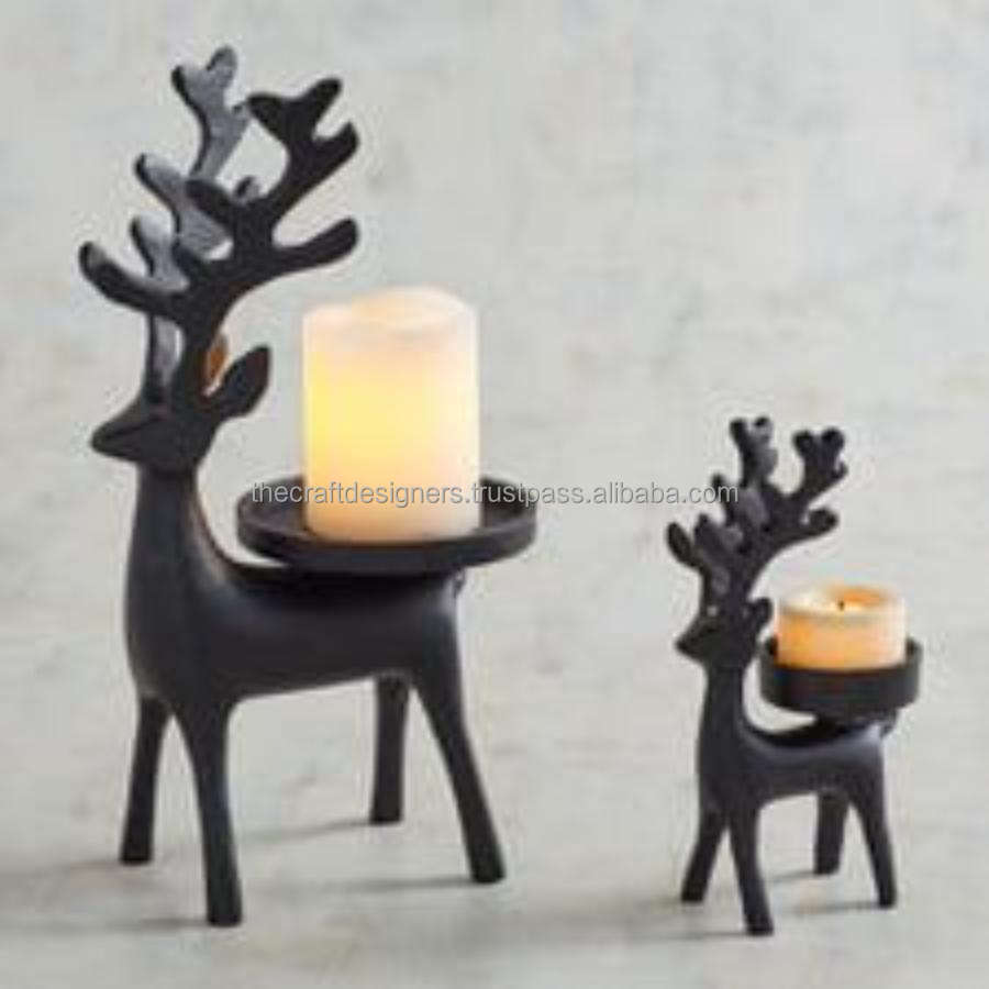 Christmas Holiday Reindeer Candle Holder Cast Aluminium Sculpted Deer Head With Large Antler 6 Arms Candle Stand Table Showpiece