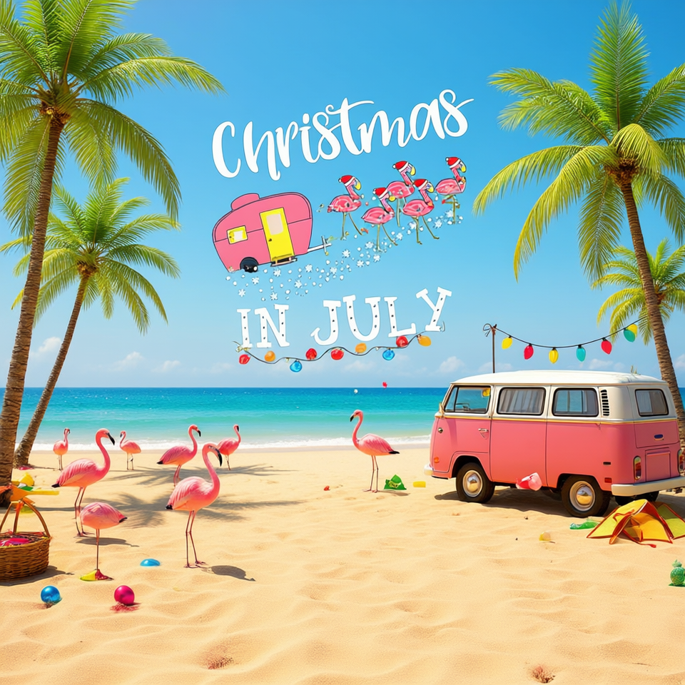 T-shirt de Noël en juillet rose flamant rose pour campeurs