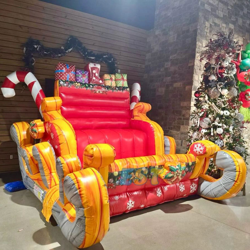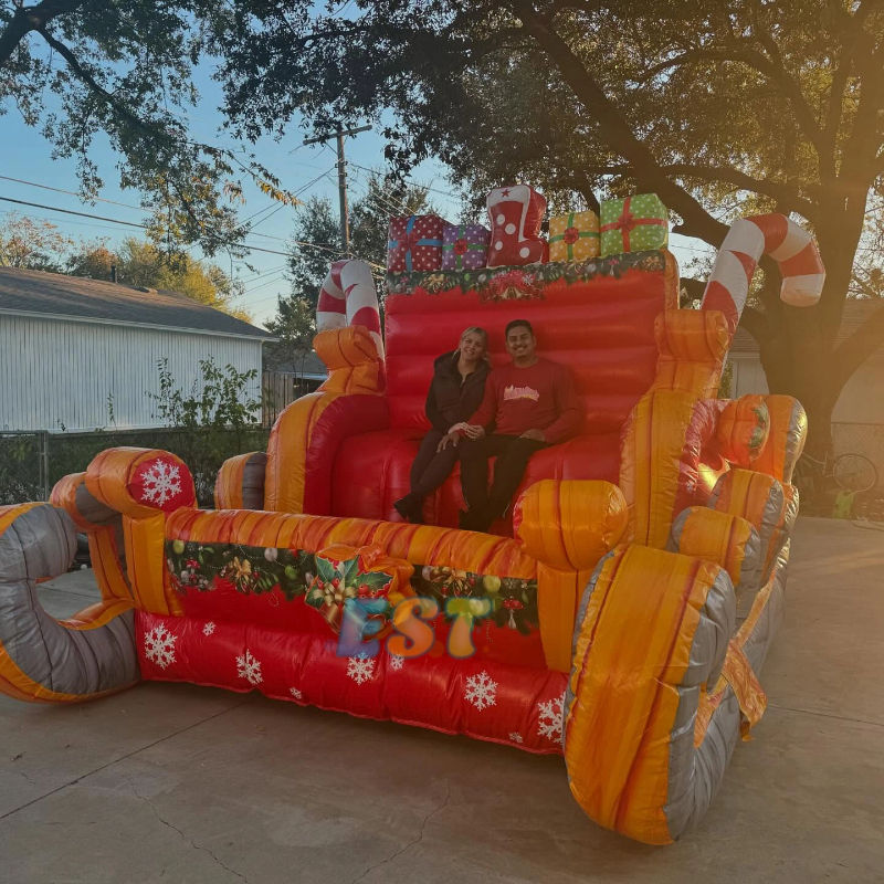 Traîneau gonflable de Noël, traîneau gonflable du Père Noël, traîneau à rennes pour selfies, célébrations de Noël du Père Noël, traîneau de Noël en plein air