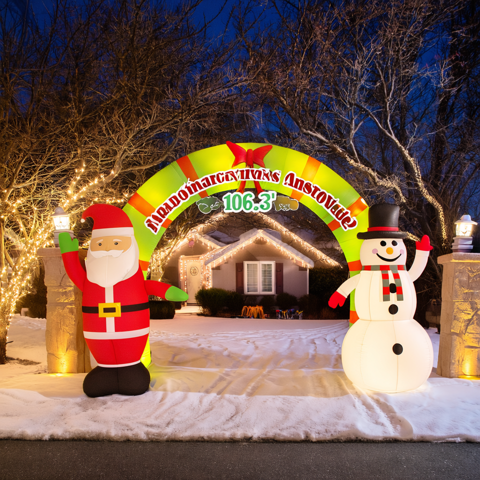 Arche de Noël LED gonflable 106,3 pouces avec Père Noël et Bonhomme de neige pour décoration de jardin extérieure et accent festif