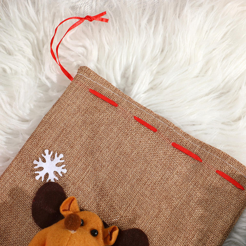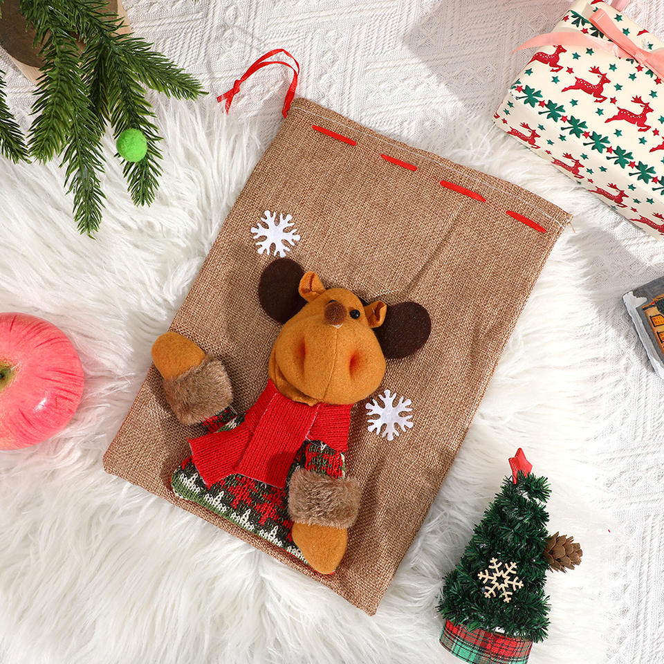 Noël nouveau faisceau recyclable Jute stockage cadeau sac dessin animé 3D cerf poupée décoration de la maison
