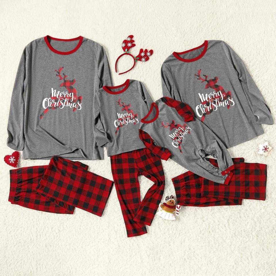 Pyjamas de Noël famille correspondant pyjamas de Noël tenues ensemble grand cerf de Noël imprimé doux pyjamas pyjamas de Noël