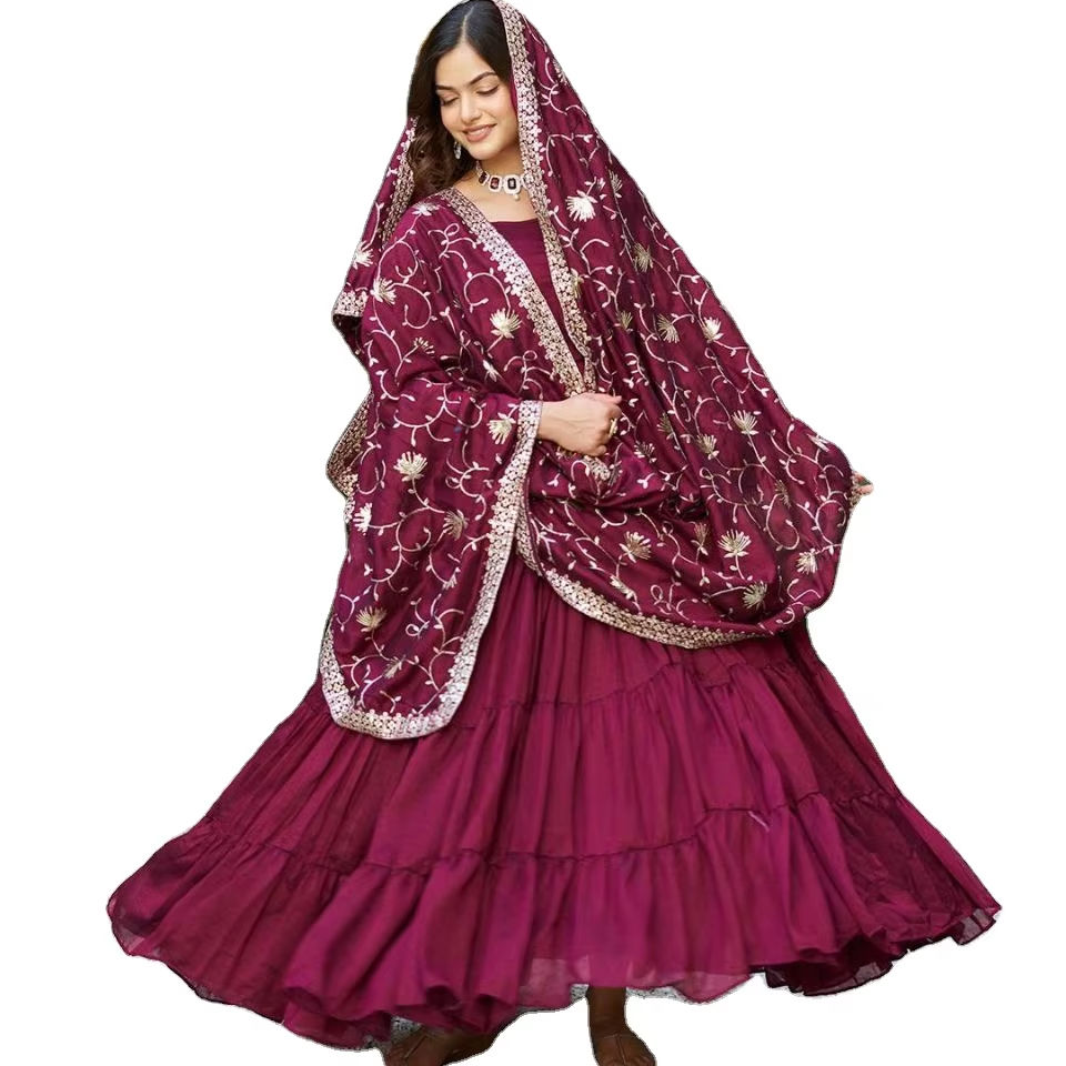 Fête de Noël et fonction de mariage spécial pur Vichitra soie tissu O cou broderie énorme Flair à la mode Salwar Kameez/robe