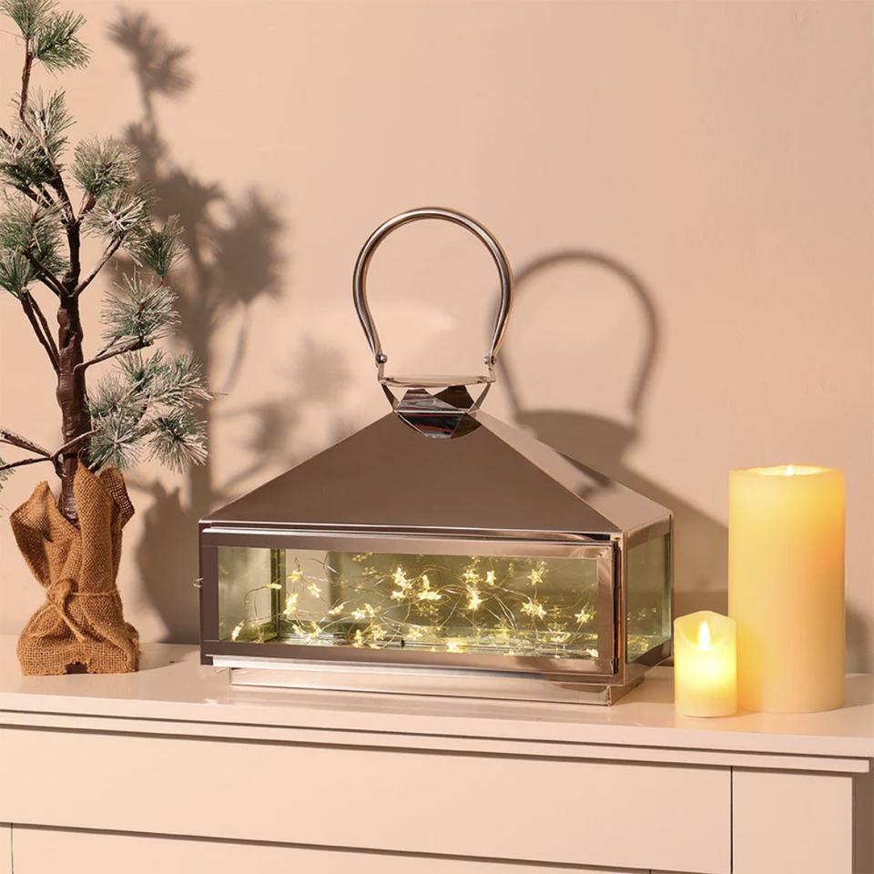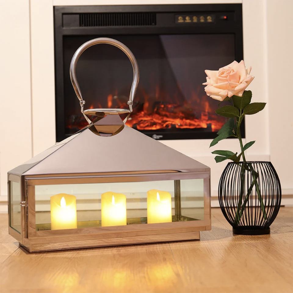 Bougie de Noël rectangulaire à 3 piliers en acier inoxydable, style classique, poli brillant, pour décoration intérieure et mariage
