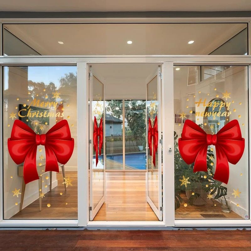 Nom du produit:Noël Rouge Arc Autocollants pour Windows Décoratif Vacances En Verre