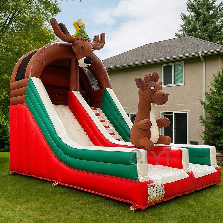 Château gonflable de Noël pour enfants, rennes, de bonne qualité, avec toboggan intégré