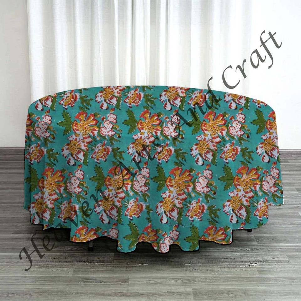 Christmas Round Table Cloth Indian Block Print Tablecloth Cotton Handmade Floral Table Cover