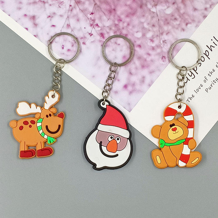 Porte-clés en caoutchouc de Noël, porte-clés en PVC, cadeau de vacances, ornement de bonhomme de neige, accessoire d'arbre, porte-clés en caoutchouc souple de dessin animé