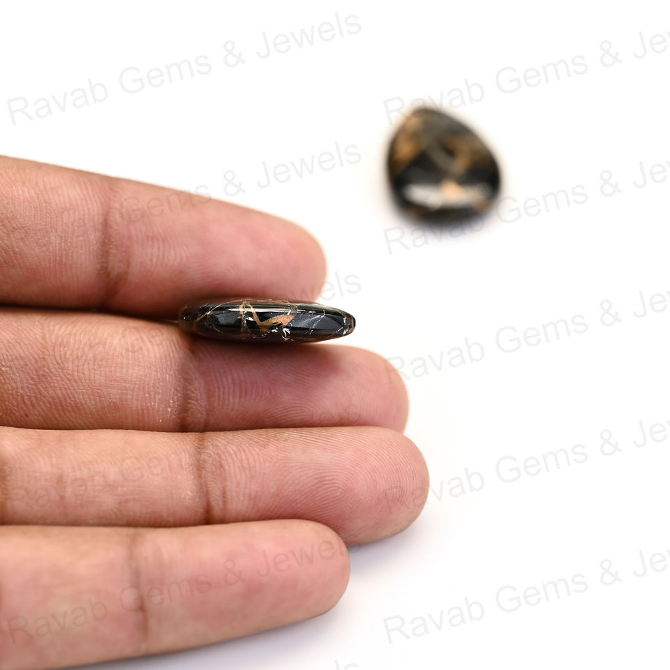 Nom du produit:Obsidienne noire en cuivre naturel 16x22mm Briolette de pierres précieuses en vrac