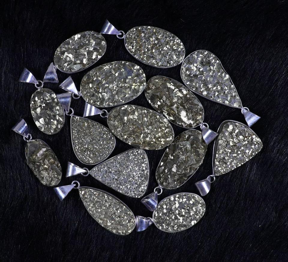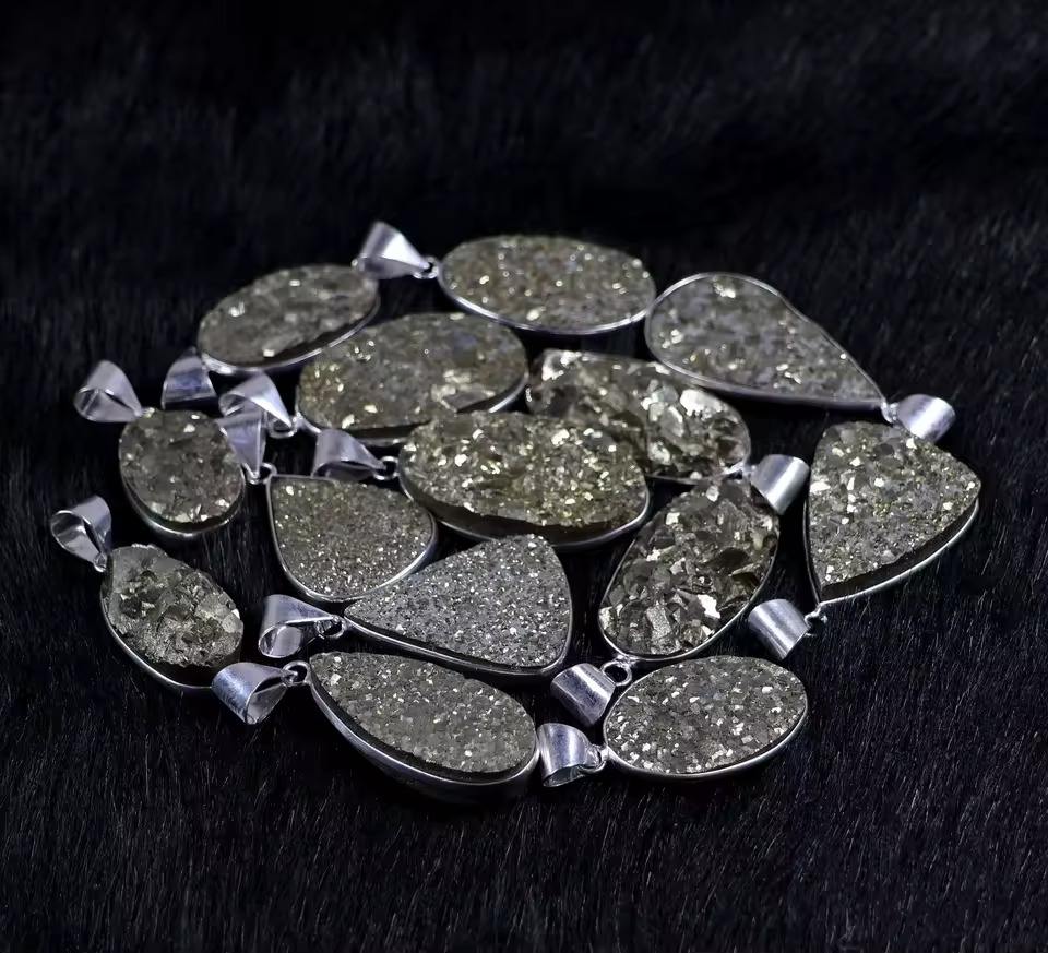 Nom du produit:Pendentifs druzy en pyrite plaqués argent